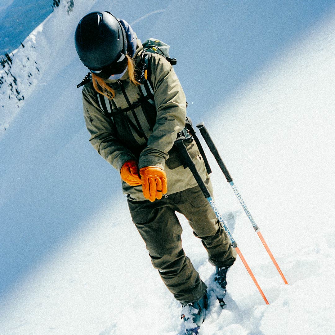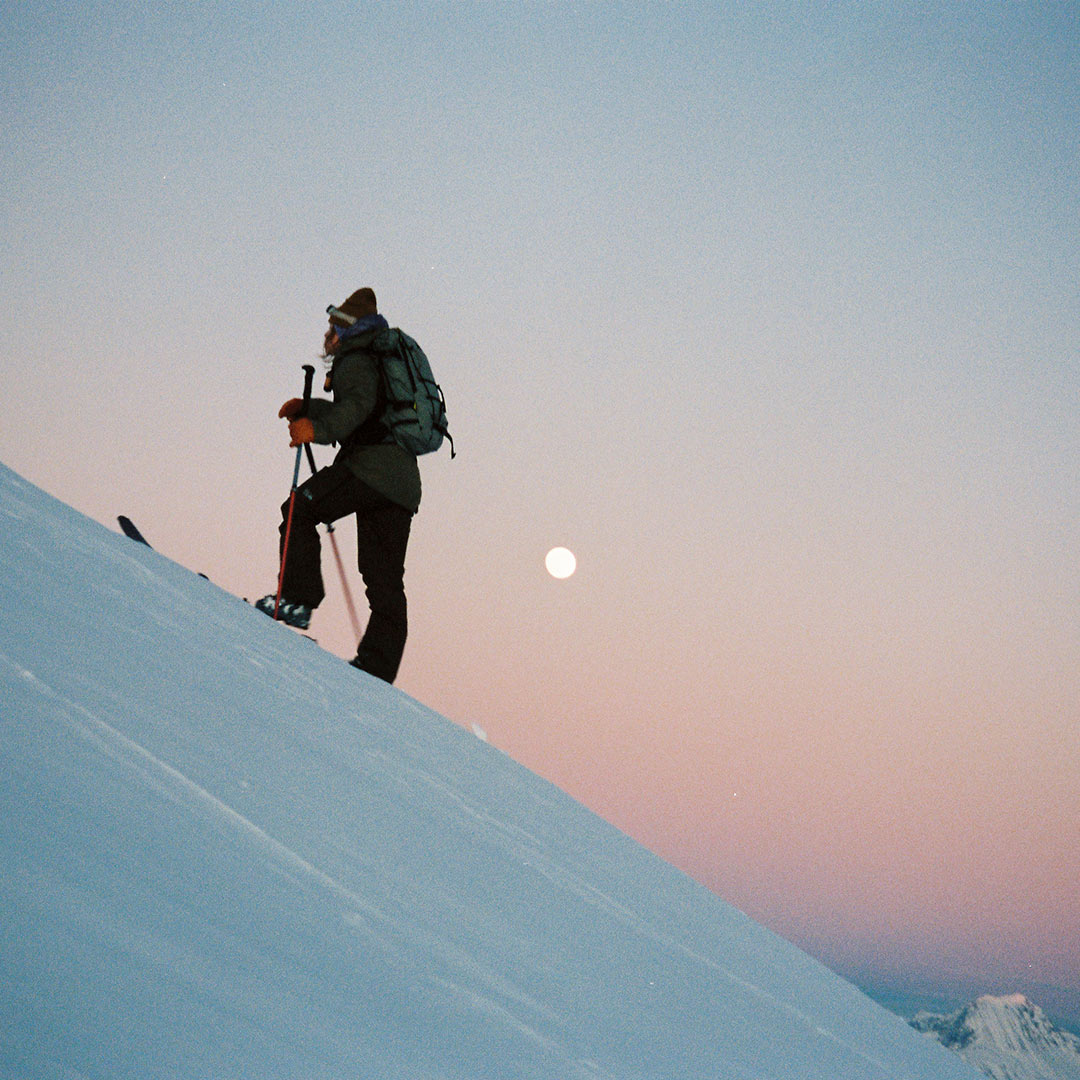 Beim Skitourengehen erzeugt der Aufstieg viel Wärme. Daher gilt es, Überhitzung zu vermeiden, ohne zu schnell auszukühlen, wenn du stehen bleibst oder abfährst. Eine Kombination aus feuchtigkeitsableitender Basislage, isolierender Mittellage und wetterschützender Aussenschicht gibt dir die beste Flexibilität.